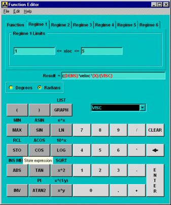 In this example, expressions for the Reynold's number and Prandtl number are used repeatedly in both equations. They are good examples of expressions that can be stored and used throughout the function editor, in all regimes.