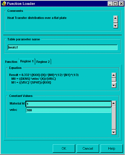 Type "heatcf" for this example. (The parameter name cannot contain more than seven characters.) Provide values for any variables that you defined in the Function Editor.