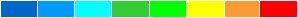 Each nonzero coefficient is symbolized by a colored square. The color depends on the module of the coefficient; the range is from blue for the smallest values to red for the largest values. The color map is:
