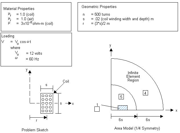 The following command listing demonstrates how to solve this problem using the current-technology element PLANE233. The electromagnetic elements represent the voltage forced coil and air. INFIN110 elements represent the far-field.