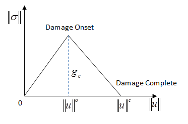 To complete the material damage definition, it is also necessary to specify a compatible material damage-evolution law (TB,DMGE). Without a damage-evolution law, the damage-initiation criteria have no effect on the material. The following table summarizes the compatible damage-evolution laws with specific damage-initiation criteria: