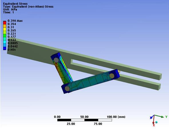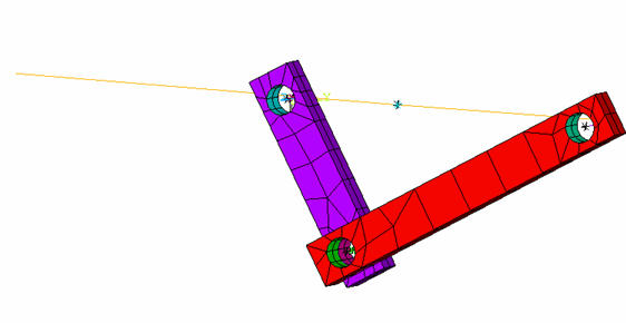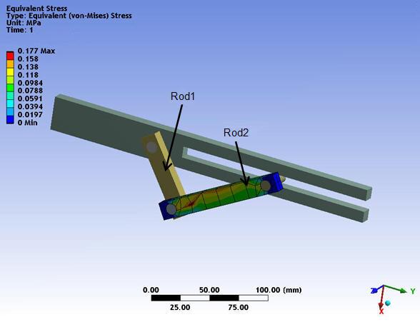 To leverage the advantage of a CMS analysis for large rotation, define another part of the model, Rod1, as a flexible body. Define the other flexible part, Rod2, as a CMS part. The input fileCrankSlot_FlexibleCMS.inp is used to perform the CMS portion of the analysis.