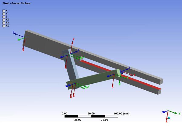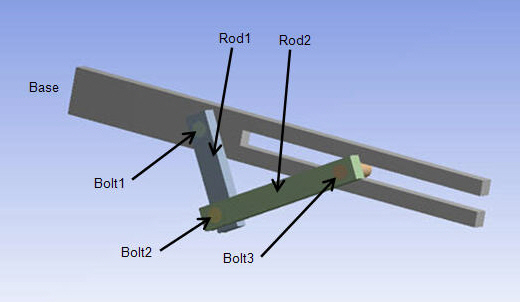 Define the joints that connect the parts of the crank slot model. Revolute, slot, and cylindrical joints form the moving joints. The base of the model is fixed to the ground via a fixed joint.