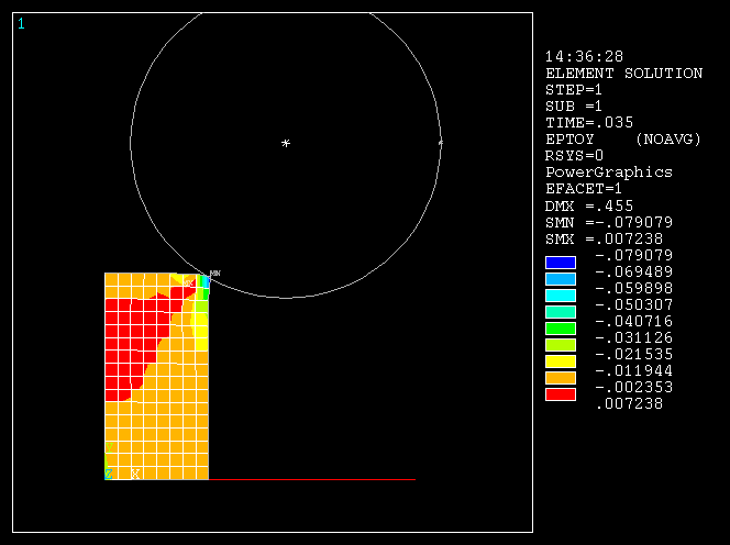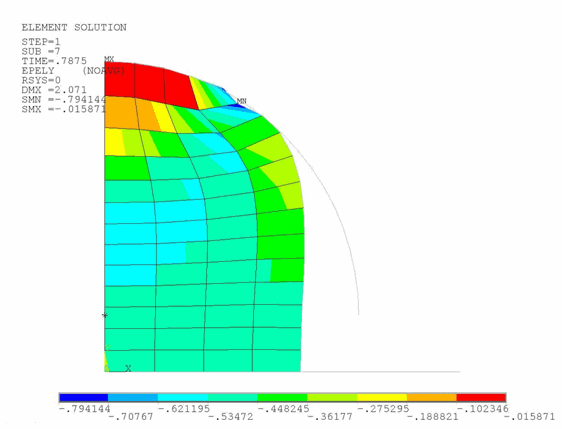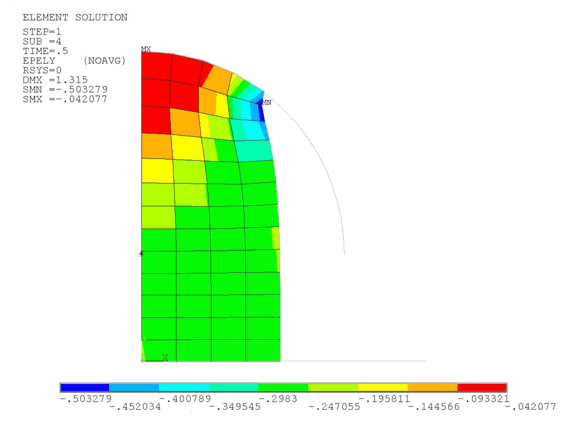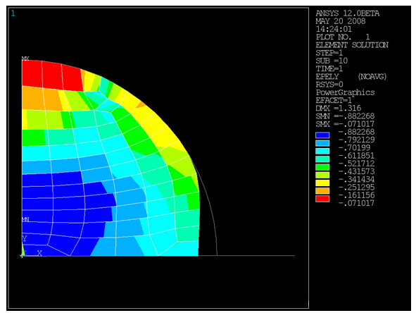 Allow the analysis to complete. Following is a plot of the total elastic strain along the Y direction: