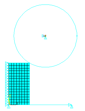To illustrate how rezoning works in a case where the analysis terminates, assume that the following initial mesh and boundary conditions exist: