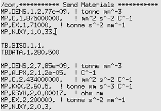 The material type is elastoplastic (TB,PLASTIC,,,,BISO):