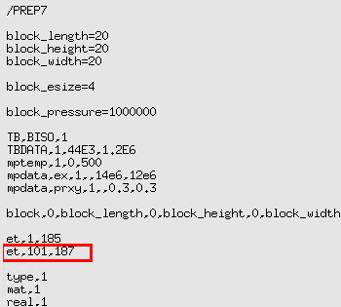 NLAD-ETCHG is available for 3D analyses only, and for models with hex-dom meshes using SOLID185 or SOLID186. After the program converts the hex-dom mesh, the new tetrahedral mesh type is SOLID187.