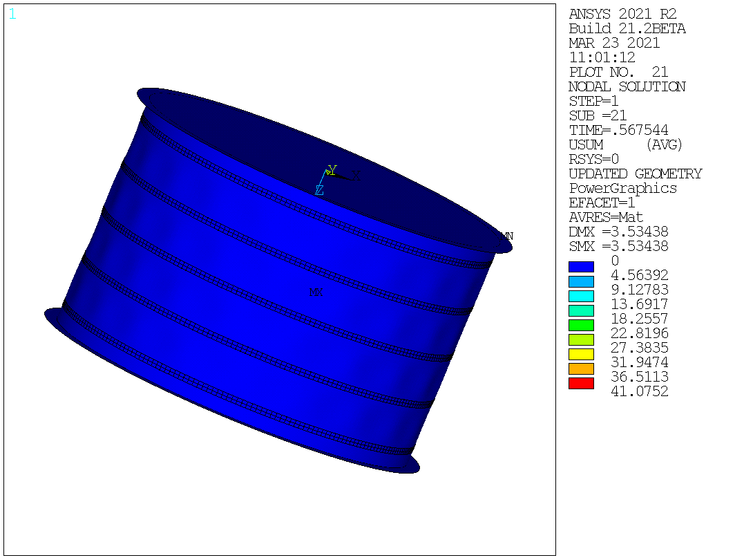 In the following figure, the linear buckling analysis results show 40 circumferential full waves at buckling: