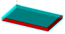 | Uses mesh-independent reinforcing elements in a thermal-structural analysis of a printed circuit board (PCB). The model includes both discrete and smeared reinforcing. The problem solution involves a thermal analysis followed by a downstream structural analysis. |