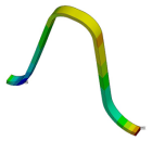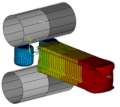 An impact simulation using a model of a 3D metal bar hitting a rigid wall. The problem shows the advantages of using impact constraints for modeling contact in a nonlinear transient dynamic analysis. Several combinations of available time-integration methods and contact algorithms are also investigated, using different material models to show how various choices affect the performance and accuracy of the finite-element solution of impact problems. |