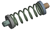 | Two shape memory alloy (SMA) simulations: a spinal spacer implant and a spring actuator. An SMA is a material that, after being subjected to mechanical loading/unloading cycles, is able to undergo large deformations without showing residual strains (pseudoelasticity) or that can recover from large deformations via temperature change (shape memory effect). The simulations demonstrate the utility of the SMA material model using martensite and austenite (nitinol), and the behavior of the SMA with thermal loading. |
