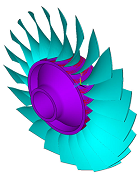 | Demonstrates the free vibration and forced-response analysis of a tuned and mistuned NASA Rotor 67 fan using cyclic modeling methods, linear perturbation, and aerocoupling solution approaches. Includes a modal analysis, a prestressed modal analysis using linear perturbation, and a prestressed mode-superposition harmonic analysis using linear perturbation. |