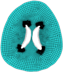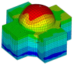 A nonlinear analysis of normal-pressure hydrocephalus under combined structural-thermal loading using coupled pore-pressure-thermal elements. Shows how displacement, pore pressure, and temperature can be solved via the coupled elements using a hyperelastic material under combined normal pressure and thermal loading. |