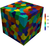 with Hall-Petch Effect | Two crystal plasticity simulations, one demonstrating the Hall-Petch effect with decreasing average grain sizes, the other showing two methods for applying initial hardness. |