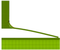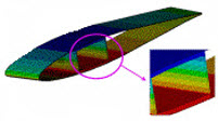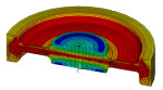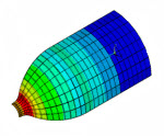 | Simulates thermal stresses during the manufacturing of a rocket nozzle. Uses current structural-shell element technology to accurately model the orthotropic thermal expansion in curved-shell structures. Section offsets are applied when connecting shell-to-shell or to shell-to-other element types. |