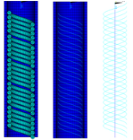 | Three methods for modeling a multi-filar coil inside of a tube. Each model uses a different contact scenario: surface-to-surface, beam-to-surface, or beam-to-beam. A comparison shows that the beam model using beam-to-beam contact offers the best advantage in terms of simplified modeling and reduced computation time. |