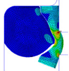 | Demonstrates the efficiency and usefulness of rezoning in a 2D simulation of metal-forming processes. Rezoning facilitates the convergence of a nonlinear finite element simulation in which excessive element distortion occurs. |