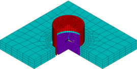 | Simulates the interaction between a soil environment and a steel suction-pile structure. The nonlinear plastic behavior of soil is modeled using a Mohr-Coulomb material. The problem examines the influence of imperfections on the structural response. |