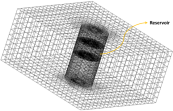 | Predicts solid deformation caused by the coupling of pore-pressure diffusion and solid-matrix deformation. Surface subsidence of a disc-shaped compartmentalized reservoir in a homogenous poroelastic continuum is used as a demonstration case. The problem highlights geomechanics (soil analysis), coupled pore-pressure mechanical solid elements, and the modified Cam-clay soil material model. |