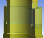 | A threaded-pipe connection analysis demonstrating the capabilities and advantages of a 2D to 3D analysis. The analysis requires extending a 2D model solution to a corresponding extruded 3D body so that the solution can continue based on the 3D model. |
