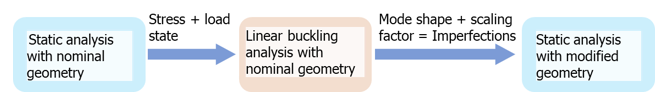 A nonlinear static analysis with nominal geometry is performed. The analysis accounts for a specific loading history to obtain a loading and stress state suitable for use in the subsequent buckling analysis.