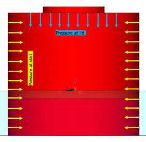 Suction pressure is applied on both the suction-pile skirt and lid. Constant pressure on the suction-pile skirt is assumed.