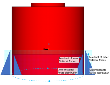 Assumed frictional forces are applied on the suction-pile skirt where the skirt interacts with the soil.