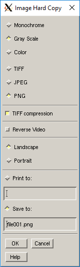 Sends the graphics directly to a printer. Then, in the corresponding text entry box, fill out the system level print command (for instance, lpr on Linux) that you use to send PostScript format files to PostScript printers.