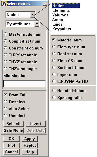 THXY rot angle: Select nodes whose nodal coordinate systems have been rotated by the given THXY angle.