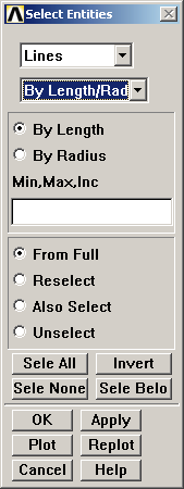 By Length or By Radius: Indicate whether lines are selected by length or by radius.