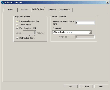 You can use the Solution Controls dialog box if you are performing a static or full transient analysis.
