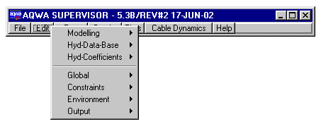 The Edit menu can be accessed through the Aqwa Graphical Supervisor menu bar.