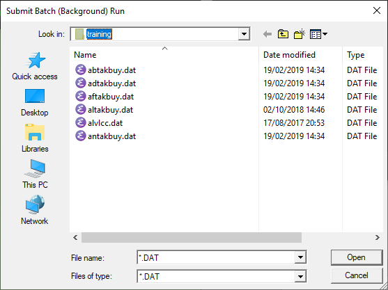 Note: Aqwa-Drift and Aqwa-Naut cannot be run interactively. However, you can run them using the BATCH option from the menu, using a standard .DAT file. A popup windows opens and prompts you to browse to a file. One file can be loaded at a time.