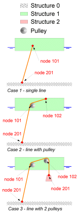 PULY 1 101 1 102 ...CASE 3 Is a LINE connected between a two structures and earth, with a 2 pulley set on the LINE. The typical connectivity input for this system would be: