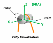 (6) This value represents the angle at which the pulley lies about the Z axis (FRA). The default angle (0°) places the pulley in the orientation shown in the diagram.