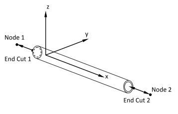 Open TUBE elements are considered to have open ends. The water surface inside the TUBE is at the same level as the surface outside. The transverse added mass is based on the outside diameter, but the axial added mass only uses the cross-sectional area of the TUBE material.