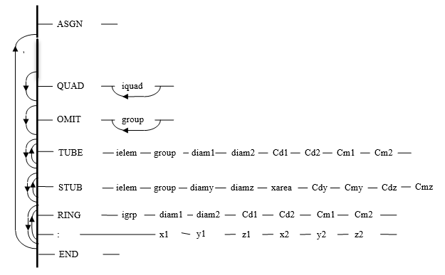 SYSTEM DATA AREA memory JOB NEW LINE PROJECT pname EXTENSION ext END STRU datatype filename HYDR datatype aqwaid END AqwaID aqwaop CURR current data END LOAD load case data END FELM finite element program data END ASGN assignment data END STOP