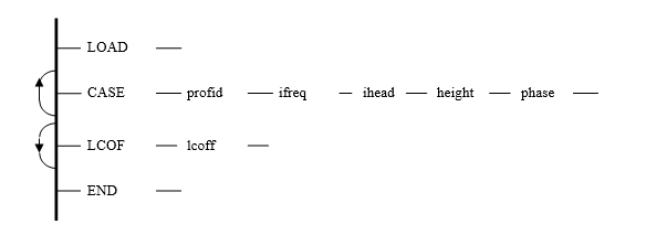 The profile identifier is referenced by the LOAD definition on successive CASE data records. The profile is defined by successive PCUR data until the next PROF command, or the end of the data block.