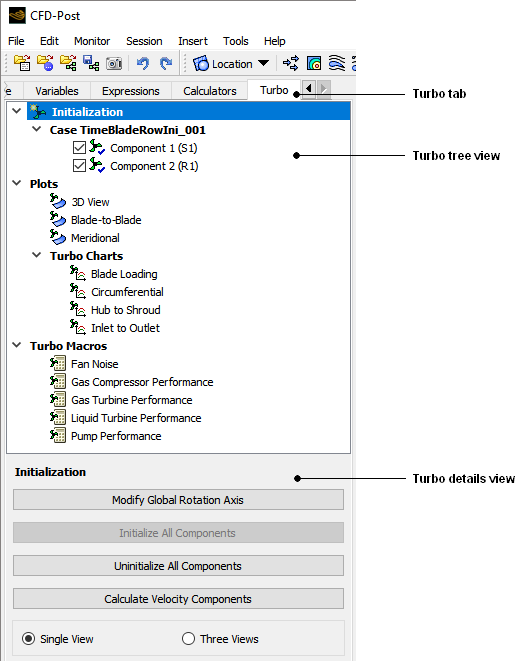 up postprocessing for turbomachinery simulations. To access the Turbo workspace, click the Turbo tab.