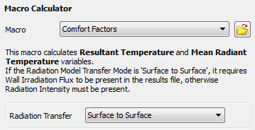 For CFX cases, the Radiation Transfer selection should match the radiation transfer mode used in the CFX-Solver. For non-CFX cases, the selection should depend on which radiation variables are available.