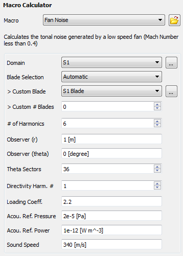 Fan Noise.In the Macro Calculator, specify the information described in Fan Noise Macro.