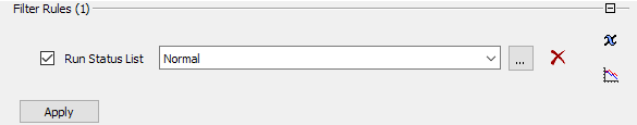 For a run status rule, note that the Run Status List options correspond to values that can be shown in the Run Status column of the operating point parameter table. For details, see Operating Point Parameter Table. The options have the following meanings: