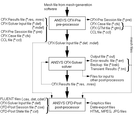 During the process of creating the model, running the CFX-Solver and analyzing the results, a number of different files are created by the various modules of the software. This section describes some of these files and their purposes.
