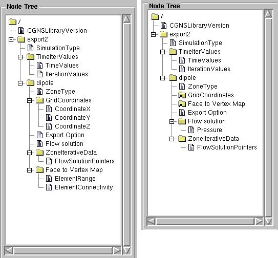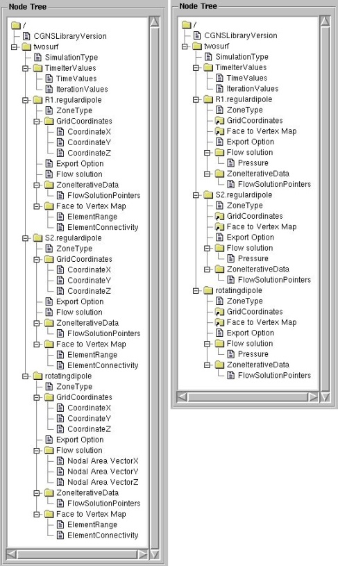 On the left is the grid file and on the right is a solution file. All CGNS files