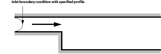 A common application of User Subroutines is the specification of a profile boundary condition. In this example, experimental data has been obtained for inflow boundary values at the inlet to a domain. The simulation is that of flow over a backward facing step; the inlet profile is given some step heights upstream of the step.