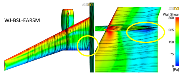 . The SA is capable to reproduce negative wall shear stress, however the model
