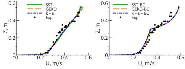 ![Comparison of velocity profiles for k-ω model family and GEKO models for CS0 diffuser [].](graphics/image029m.png)