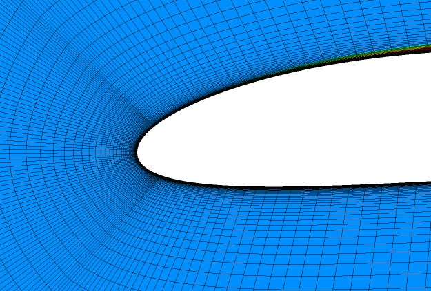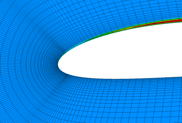 wall normal direction in the leading edge region shown in Figure 12.146: Local mesh refinement on the leading edge for the medium mesh.
