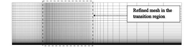 transition region. The baseline and refined meshes are shown on Figure 12.149: Computational meshes for the fully turbulent (upper) and transitional (lower) boundary layer.. For the refined mesh, the streamwise grid step is