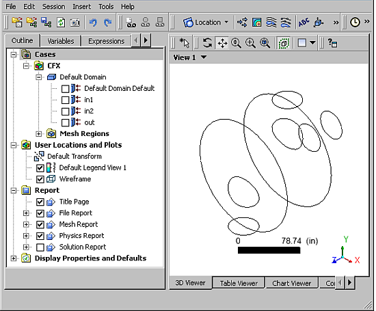 This process updates the project and all of the Ansys Workbench views. Ansys Workbench may also close any open Ansys CFX applications and run them in the background. When the update is complete, all of the results cells show current values and all of the cells that display their status are marked as being up-to-date.